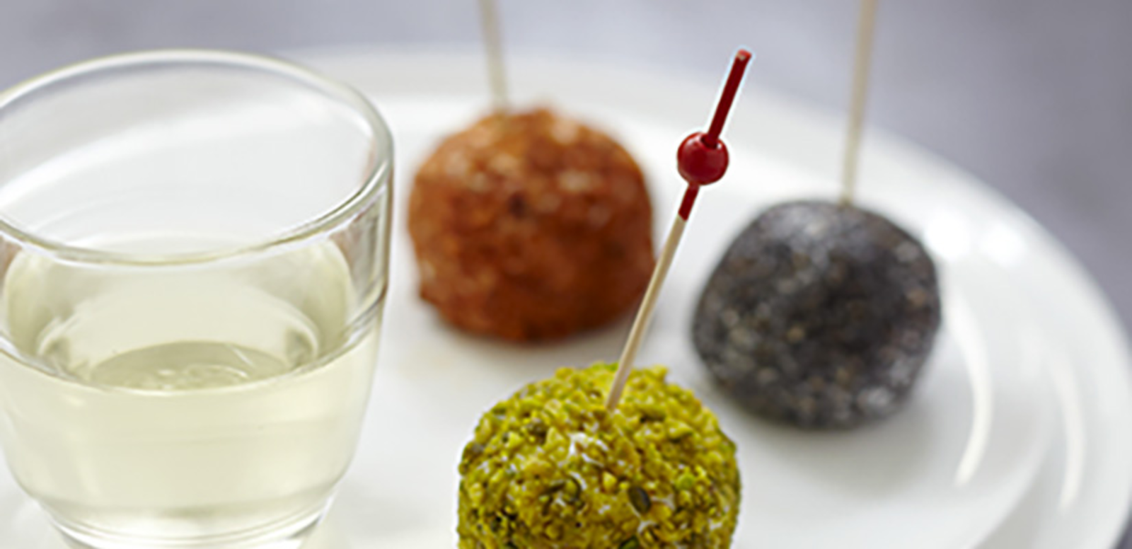 Falafels de lentilles corail et billes St Môret : Un mariage heureux entre la douceur des lentilles corail et le crémeux du St Môret.