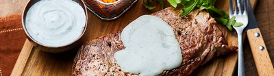 Disposer la viande dans les assiettes et la recouvrir de Sauce de Saint Agur.