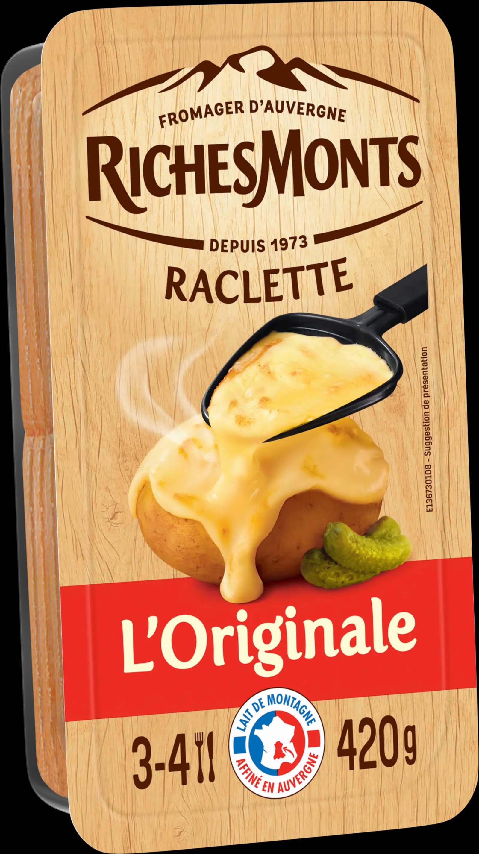 - 4 à 5 tranchesfromage à raclette RichesMontsRichesMonts Raclette L'Originale 420G