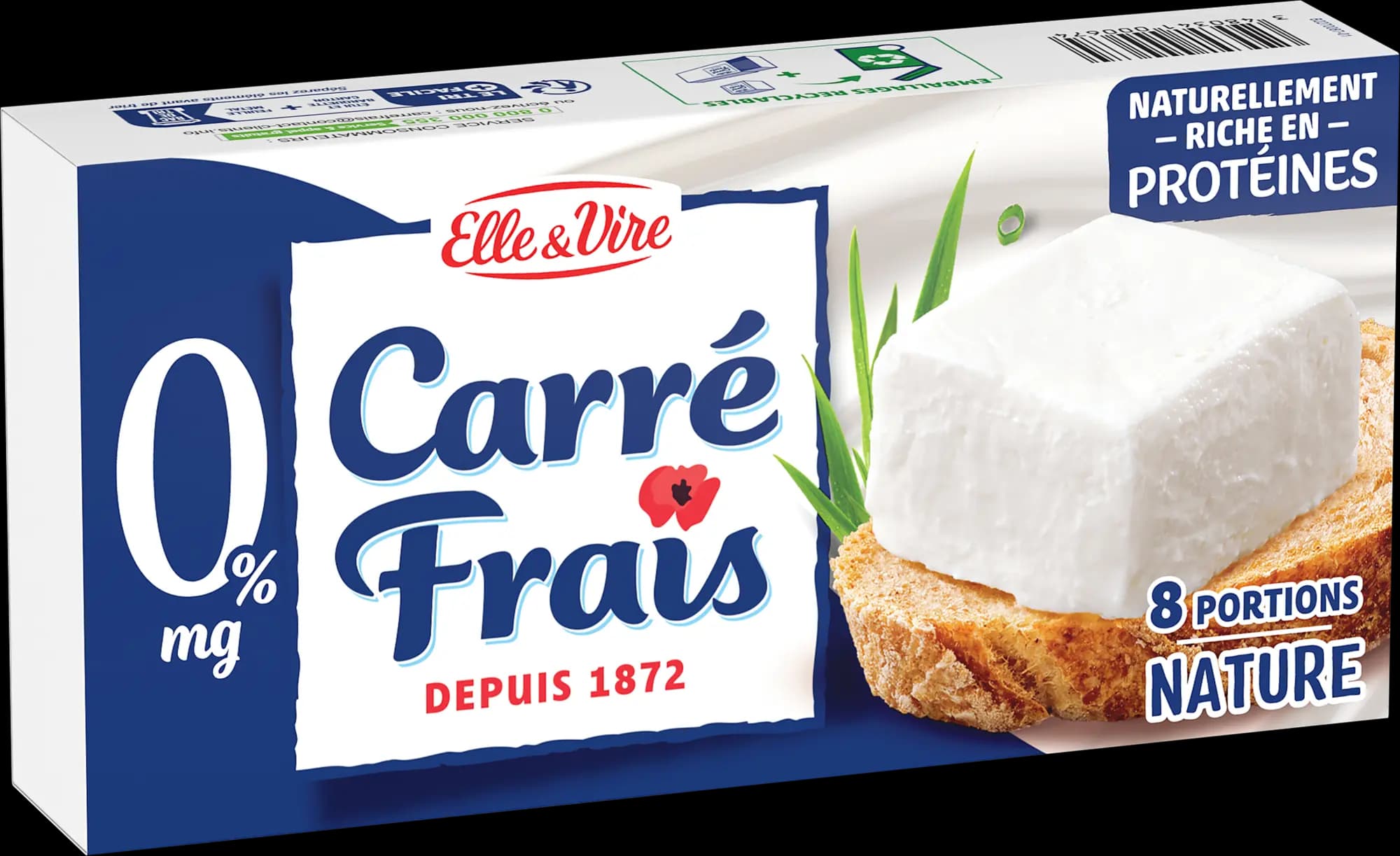 - 100 g (4 portions)fromage frais 0%CARRÉ FRAIS NATURE 0%MG 8 PORTIONS 200G